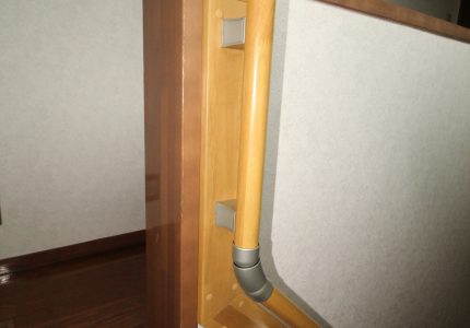 手すりの太さは、力が弱いお子様からお年寄りまでしっかり握りやすい“35mm”、材質は硬くて強い“集成材”です。