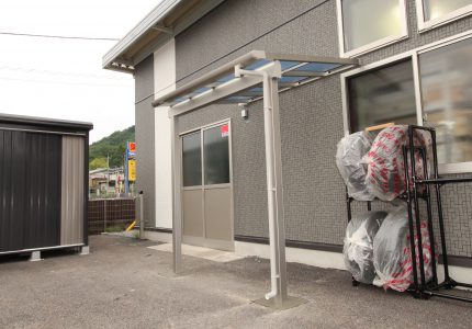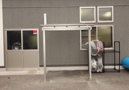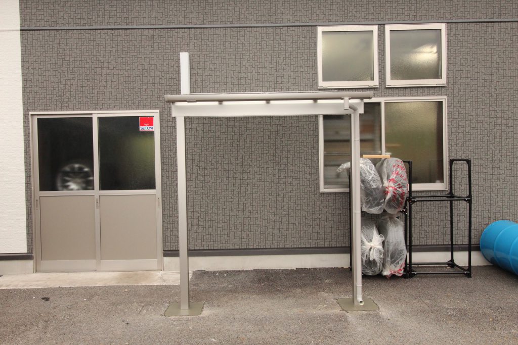 従業員の駐輪スペースと機械を外で動かす際、雨で濡れないように屋根を取付けたいとご依頼いただきました。