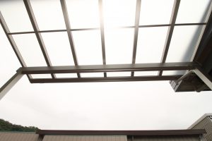 屋根材は【熱線遮断ポリカーボネート板】で、アクリル板に比べ約20倍衝撃に強く、弾力性に富んだ材質で熱による屋根下温度の上昇を防ぎ、紫外線・赤外線カットにも優れています。